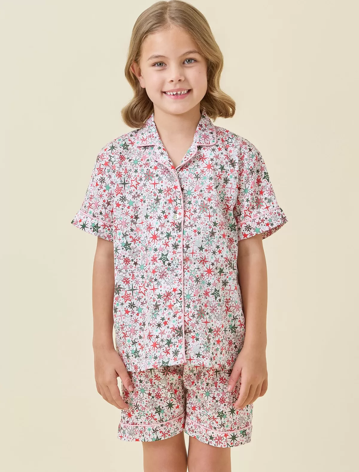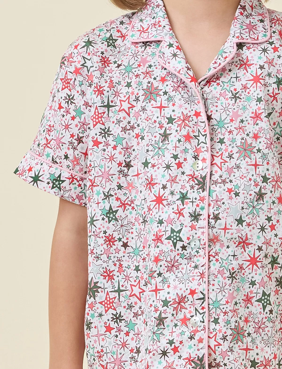 A festive star print PJ set, perfect for any of your little one. Made from a breathable, silky-soft cotton fabric.