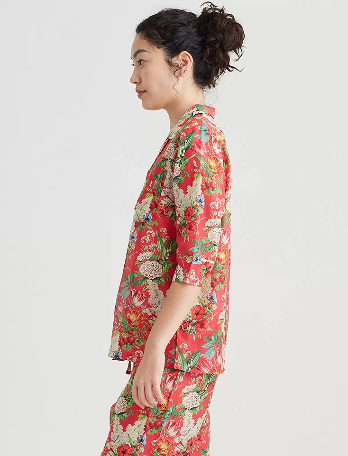 A modern floral print in a festive hue in our signature cotton silk fabrication. A lightweight sleepwear essential for warm summer nights.