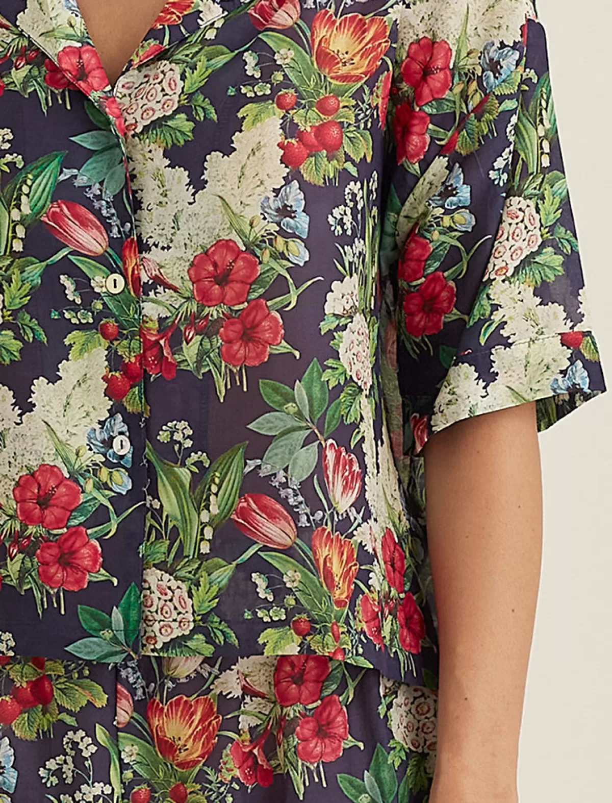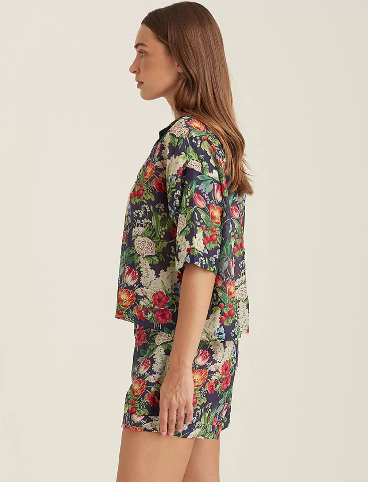 A modern floral print in a dark hue in our signature cotton silk fabrication. A lightweight sleepwear essential for warm summer nights.