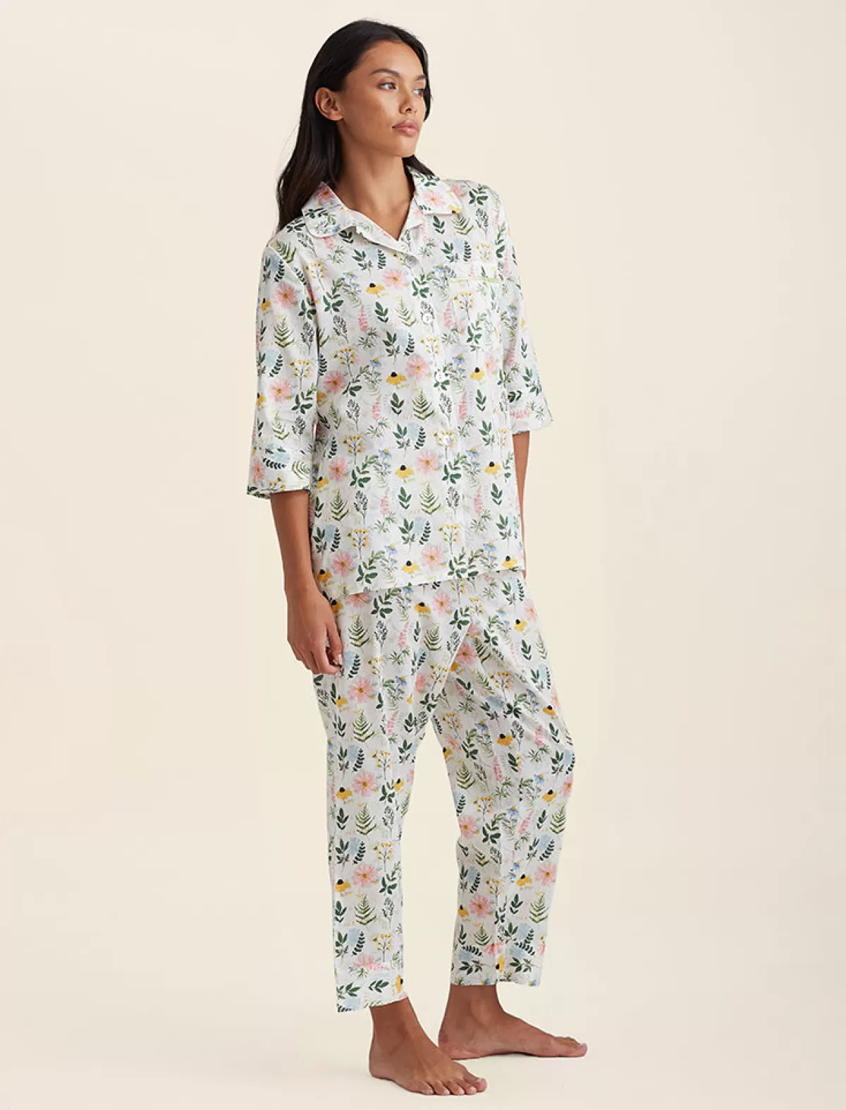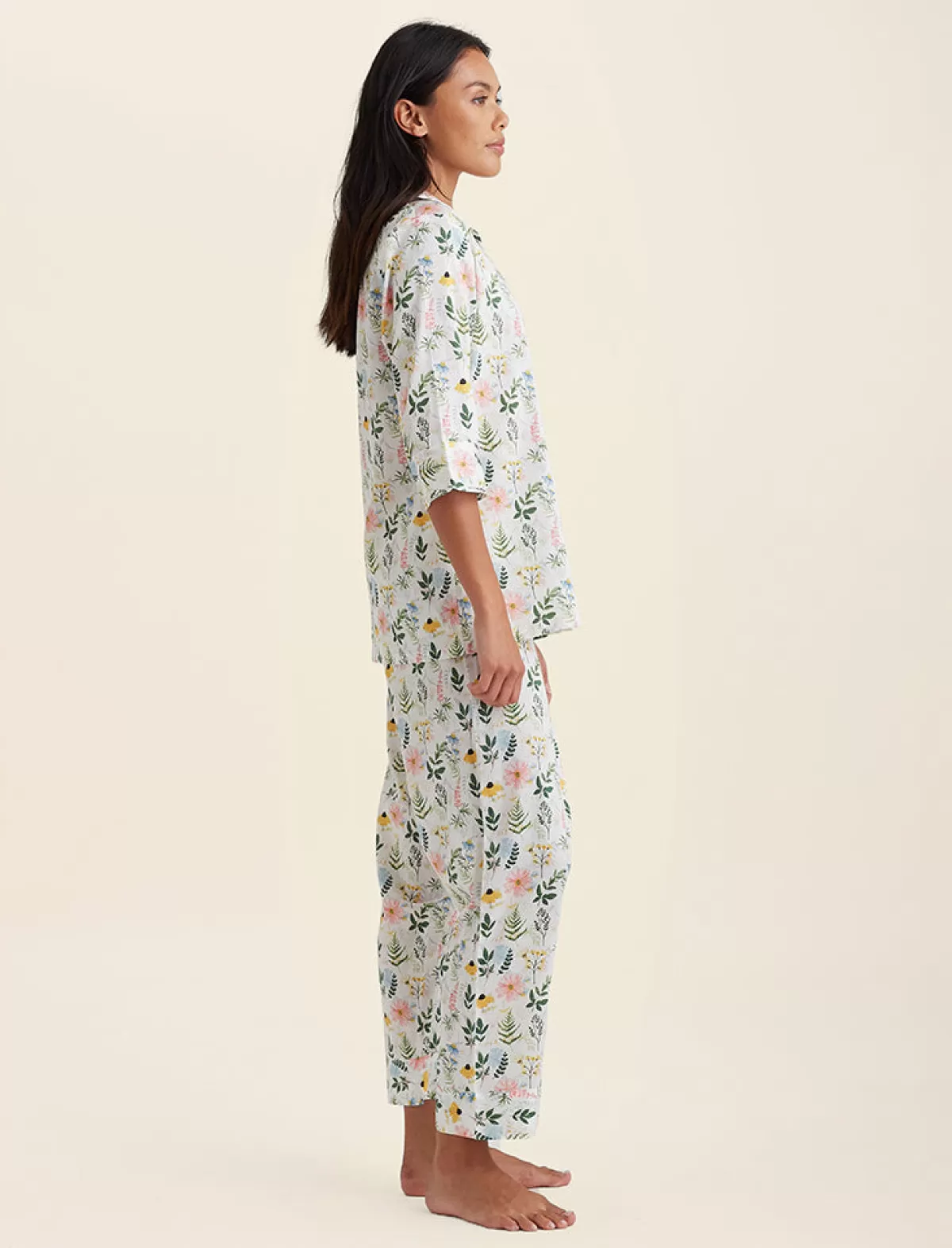 An airy spring floral in a light, breathable pure cotton fabrication with a silky finish.