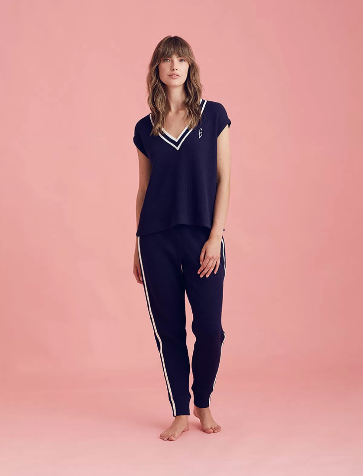Papinelle x besties bring you a limited edition collaboration. A tennis-inspired sleepwear range designed in contemporary styles whilst embracing a nod to the 70’s. Designed to take you from the bedroom to centre court.