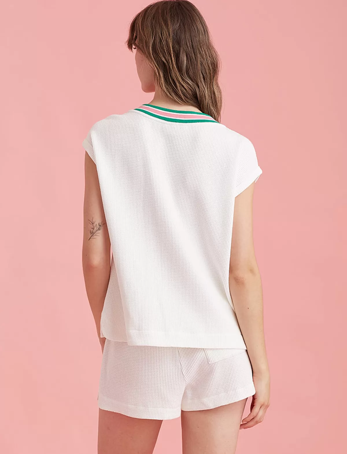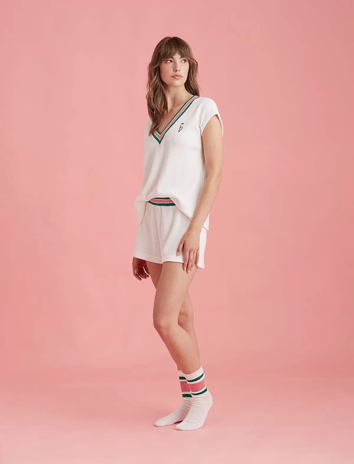 Papinelle x besties bring you a limited edition collaboration. A tennis-inspired sleepwear range designed in contemporary styles whilst embracing a nod to the 70’s. Designed to take you from the bedroom to centre court.
