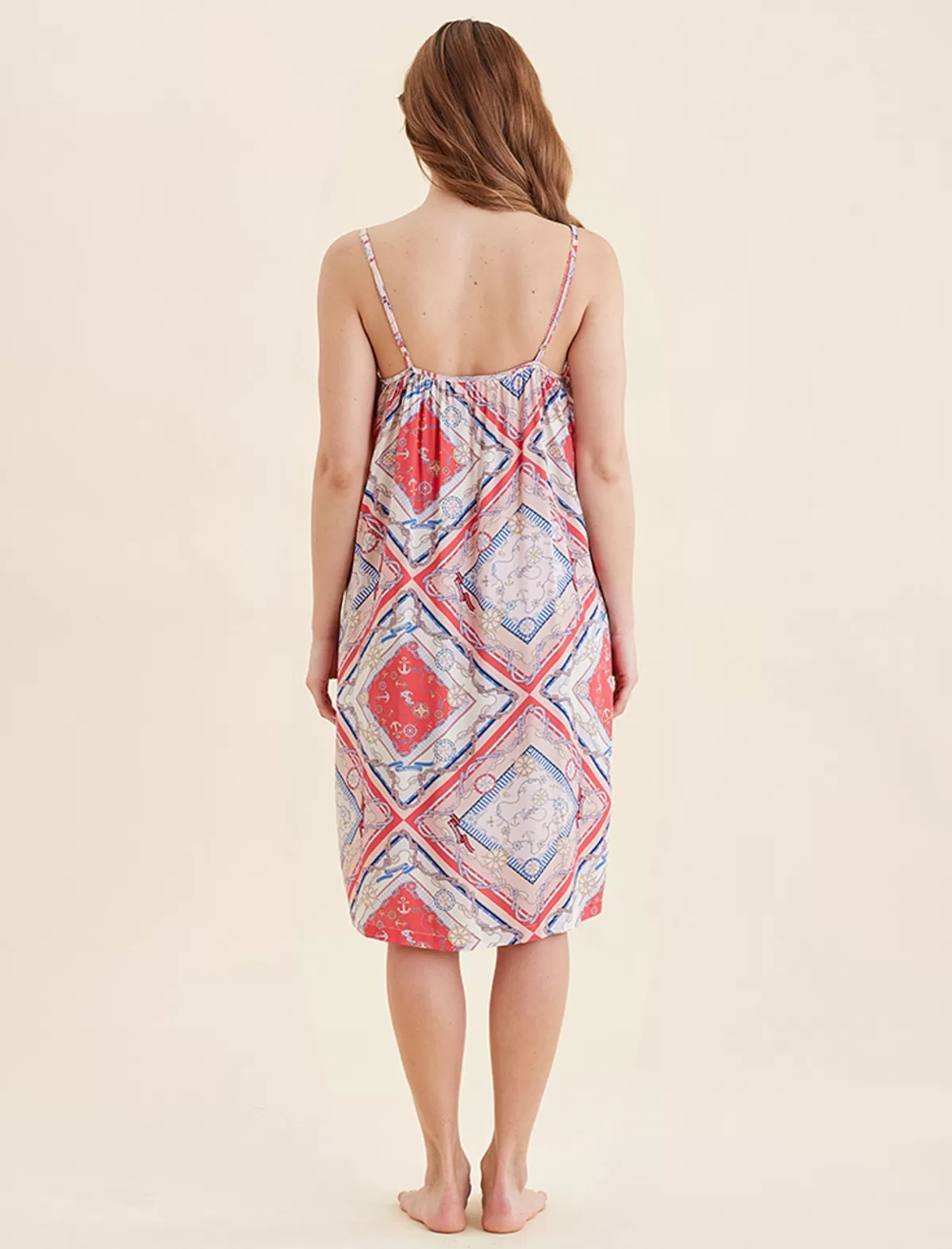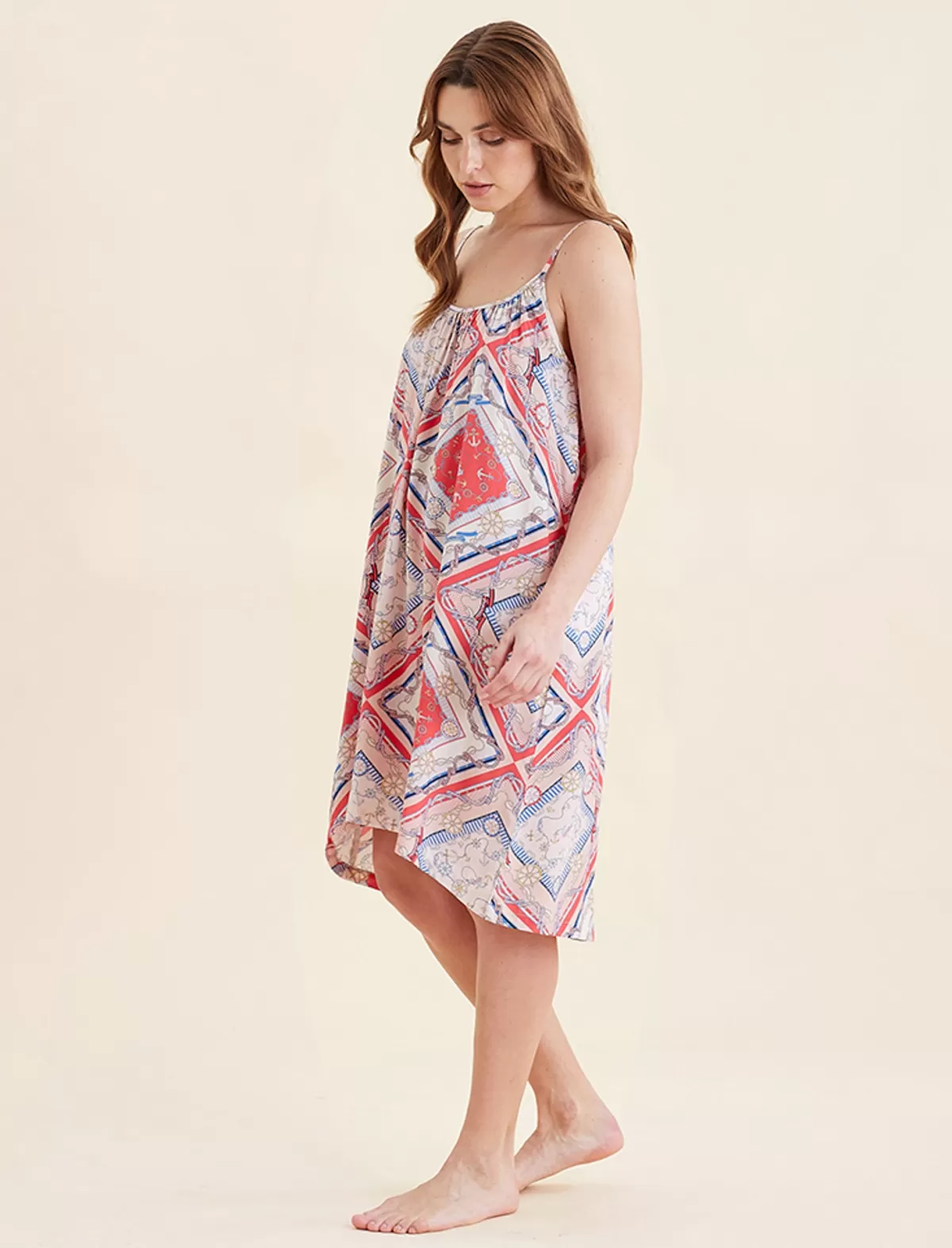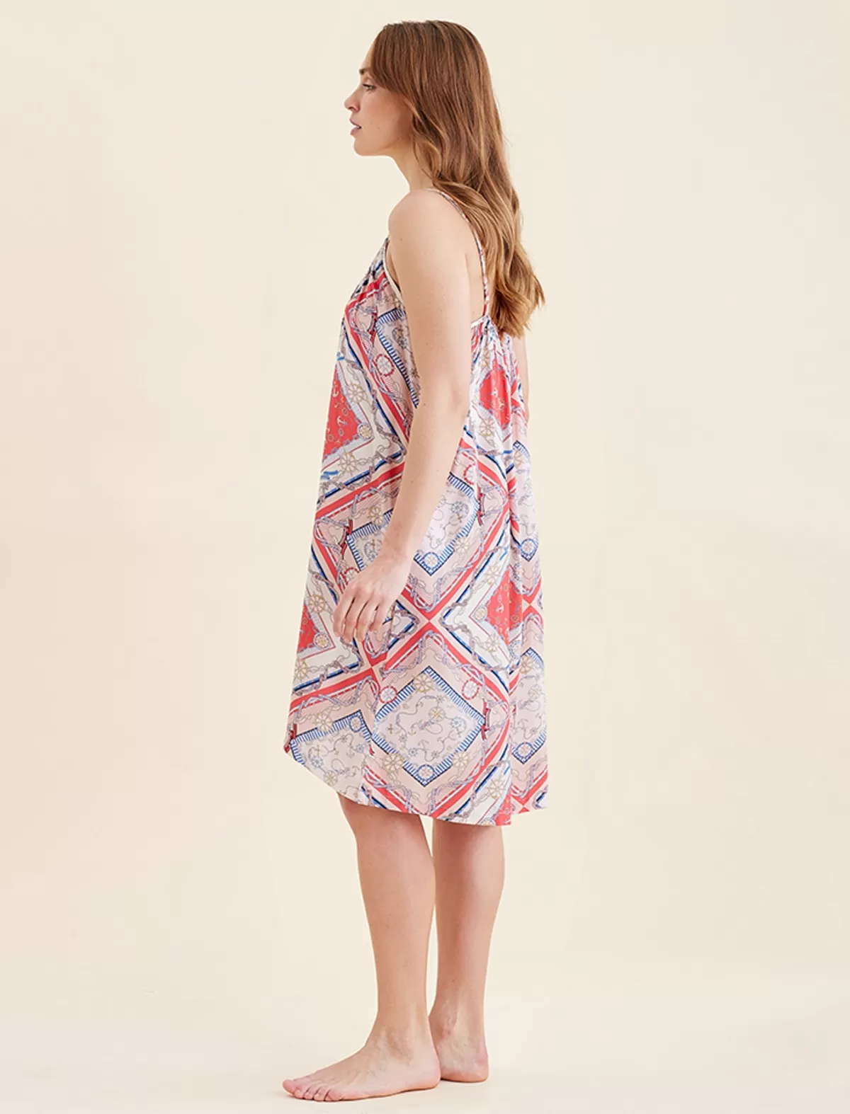 This strappy nightie, now in our marine print, is made from certified Lenzing™ Ecovero™ Viscose and offers a beautifully soft hand feel. This fabric is breathable and light making it the perfect fit for warmer months.