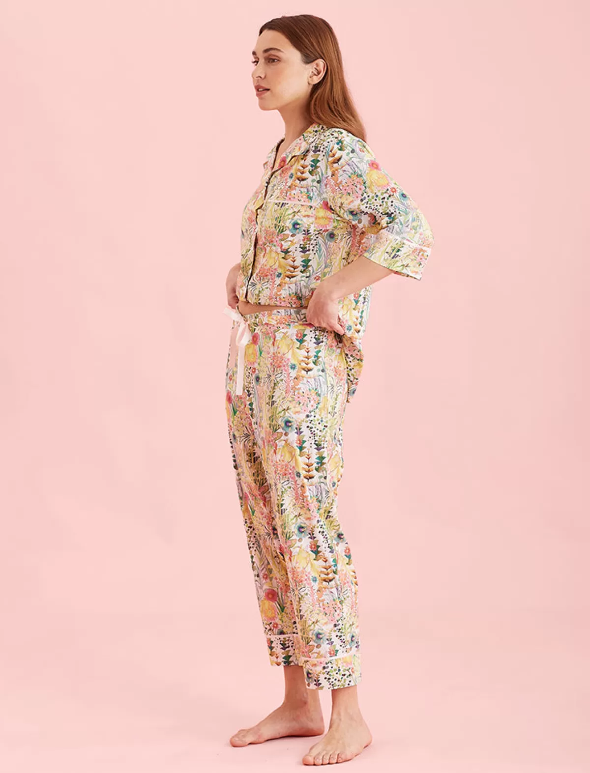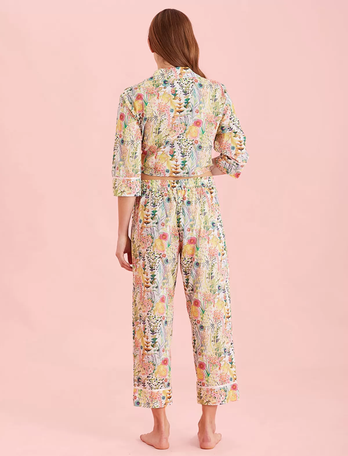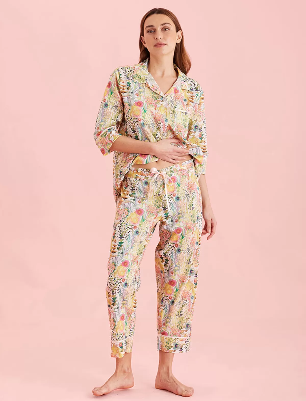 A limited edition premium capsule collection Made With Liberty Fabrics, pairing London charm with dreamy, luxurious Papinelle sleepwear. Tresco is a watercolour study that represents the rich collection of plants gathered from around the globe. The Liberty Fabrics print is formed from a selection of flowers, ferns and succulents from the windswept sand dunes and landscaped borders of the Abbey Garden.